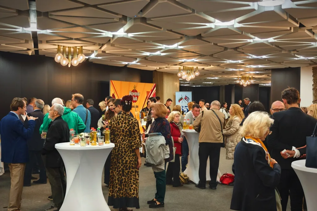 Празникът продължи във фоайето на НДК с коктейл, кубински ром и демонстрация на ръчно свиване на пури от майсторката Юлемнис Алфонсо, чиито сръчни ръце за по-малко от две минути завиваха пура след пура.