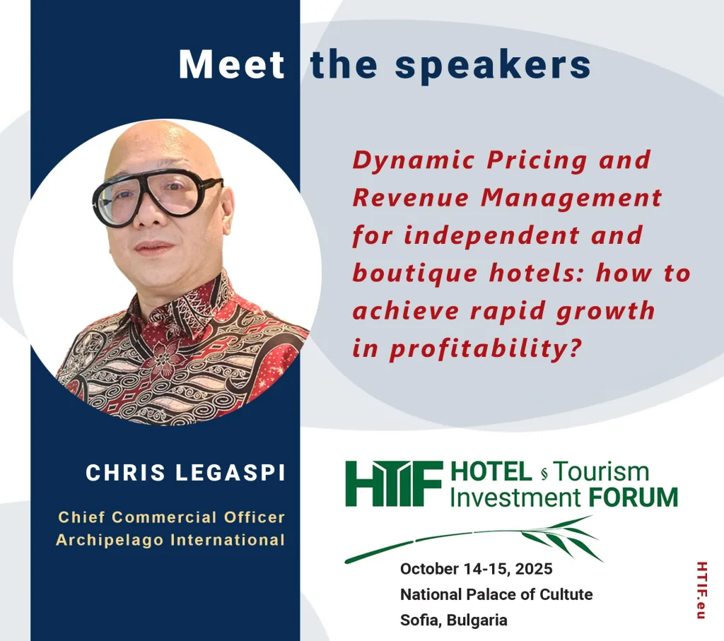 Крис Легаспи има над 25 години международен опит в областта на търговските стратегии, приходния мениджмънт, маркетинга и дигитализацията на хотелиерството.
