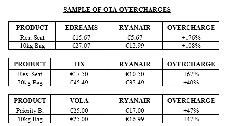 Ryanair публикува днес (вторник, 7 октомври) своето октомврийско OTA проучване (Online Travel Agency Survey), което отново изобличава онлайн туристическите агенции (OTAs), като eDreams, Tix и Vola, за системно завишаване на цените – с до 176% повече от тези, предлагани директно на сайта на Ryanair.