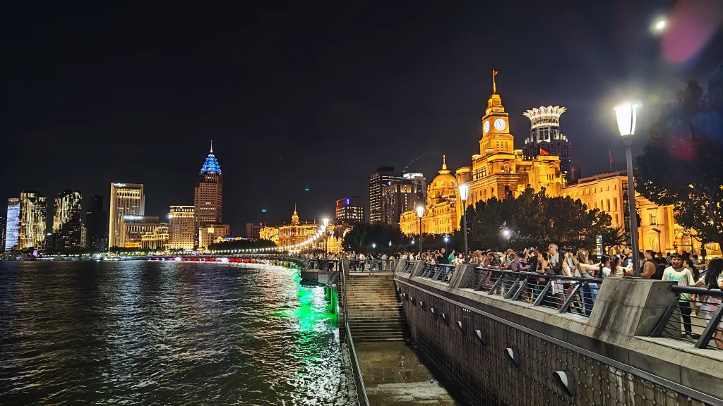 Това е „фасадата“ на стария град – сгради от 19–20 век в стилове: неокласицизъм, барок, арт деко. Най-добре е да се посети вечер, когато отсреща Пудун грее като космическа станция.