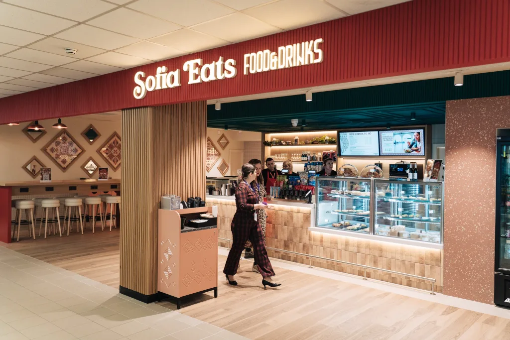 Новото заведение Sofia Eats, с площ 160 кв. м, се намира на Терминал 1 и предлага съвременна интерпретация на класическата българска кухня. В менюто пътниците могат да открият добре познати и обичани ястия като гюведже, шопска салата, сарми и други автентични специалитети, представени в модерен и удобен за пътуване формат.
