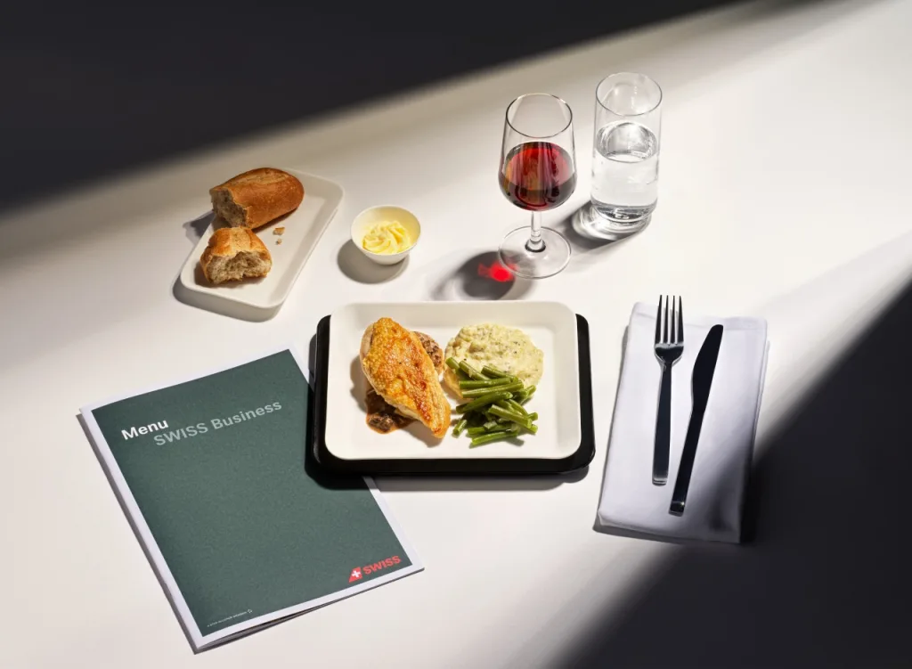 Пътниците в Business Class ще опитат творенията на Оливие Жан от L’Atelier Robuchon в The Woodward, Женева (две звезди „Мишлен“, 17 GaultMillau точки) и на екипа на Badrutt’s Palace в Санкт Мориц (16 GaultMillau точки). Тяхното меню подчертава кулинарните традиции на френско- и романшкоговорящите региони.