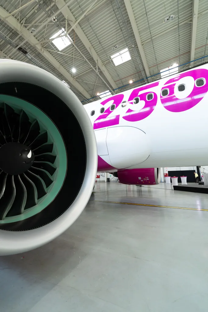 28 ноември 2025 г., София/Будапеща – Wizz Air, най-бързо развиващата се европейска авиокомпания и лидер в Централна и Източна Европа, представи своя 250-и самолет. Това е ключов момент в историята на авиокомпанията, който я поставя на половината път към голямата ѝ цел – флотилия от 500 самолета. Постижението подчертава устойчивия растеж на Wizz Air и поставя начало на нов етап в разширяването на възможностите за достъпни пътувания.